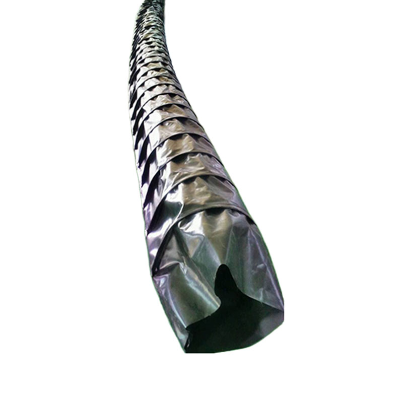 導向柱密封伸縮囊套:在儲罐浮盤中,導向柱起到了固定浮盤位置以及引導其上下穩定運行的作用,由于其和儲存介質直接接觸,在浮盤上下浮動式,在導向柱內留存有揮發性殘余氣體,針對導向立柱側壁開孔情況,整個伸縮囊套將浮盤內空間和立柱縫隙油氣散逸空間進行隔絕,隨著浮盤運動,立柱與浮盤之間的縫隙散逸的油氣始終在伸縮囊套之中,起到密封防護作用。立柱護套主要用于浮盤頂部的浮頂立柱密封。